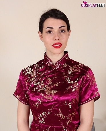 Irresistible Petra in a sexy geisha costume and black ballet flats