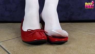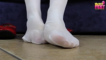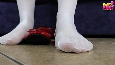 This web site contains sexually explicit material:Petra in red and white nurse’s uniform, white suspender thighs and red ballet flats just got out of work and relaxes on the sofa. She seductively takes off her earrings, nurse hat and shoes. After a long day at work, Petra just wants to relax, unwind and play with her delicate feet. Enjoy extreme close-ups on her sexy feet hidden under a sheer layer of thin white nylon. Petra look hotter than hell as she strokes her nylon-covered feet against the sofa's arm. Do you wanna massage her feet to relieve aches?