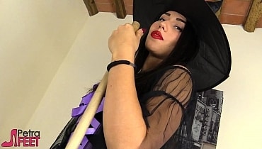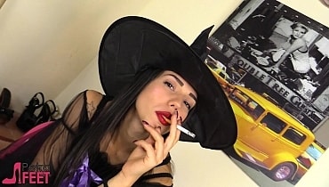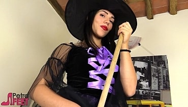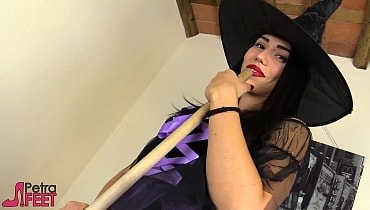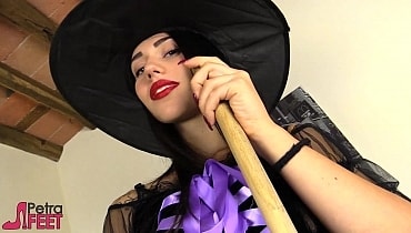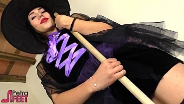 This web site contains sexually explicit material:Stunning Petra looks drop dead hot in a witch cosplay costume. Featuring a black corset that makes her waist look amazing with a black mini-skirt and black stockings with purple warmers paired with black stilettos. Enjoy as Petra sensually moves her body to finally be sited and start teasing you by dangling her black stilettos off her feet. As she takes them off she starts rubbing her nylon-covered feet against one another. Your mouth will get watery as Petra starts arching her soles and pulling her nylons to strongly feel them in her smooth skin. Enjoy as the camera makes a close-up to her small toes as she curls and wiggles them you will wish you can put in your mouth.