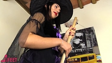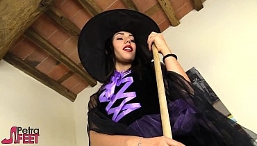 This web site contains sexually explicit material:Stunning Petra looks drop dead hot in a witch cosplay costume. Featuring a black corset that makes her waist look amazing with a black mini-skirt and black stockings with purple warmers paired with black stilettos. Enjoy as Petra sensually moves her body to finally be sited and start teasing you by dangling her black stilettos off her feet. As she takes them off she starts rubbing her nylon-covered feet against one another. Your mouth will get watery as Petra starts arching her soles and pulling her nylons to strongly feel them in her smooth skin. Enjoy as the camera makes a close-up to her small toes as she curls and wiggles them you will wish you can put in your mouth.